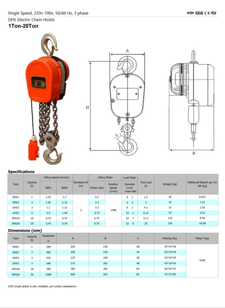 جرثقیل برقی 5تن کارگاهی سقفی زنجیری DHS سه فاز